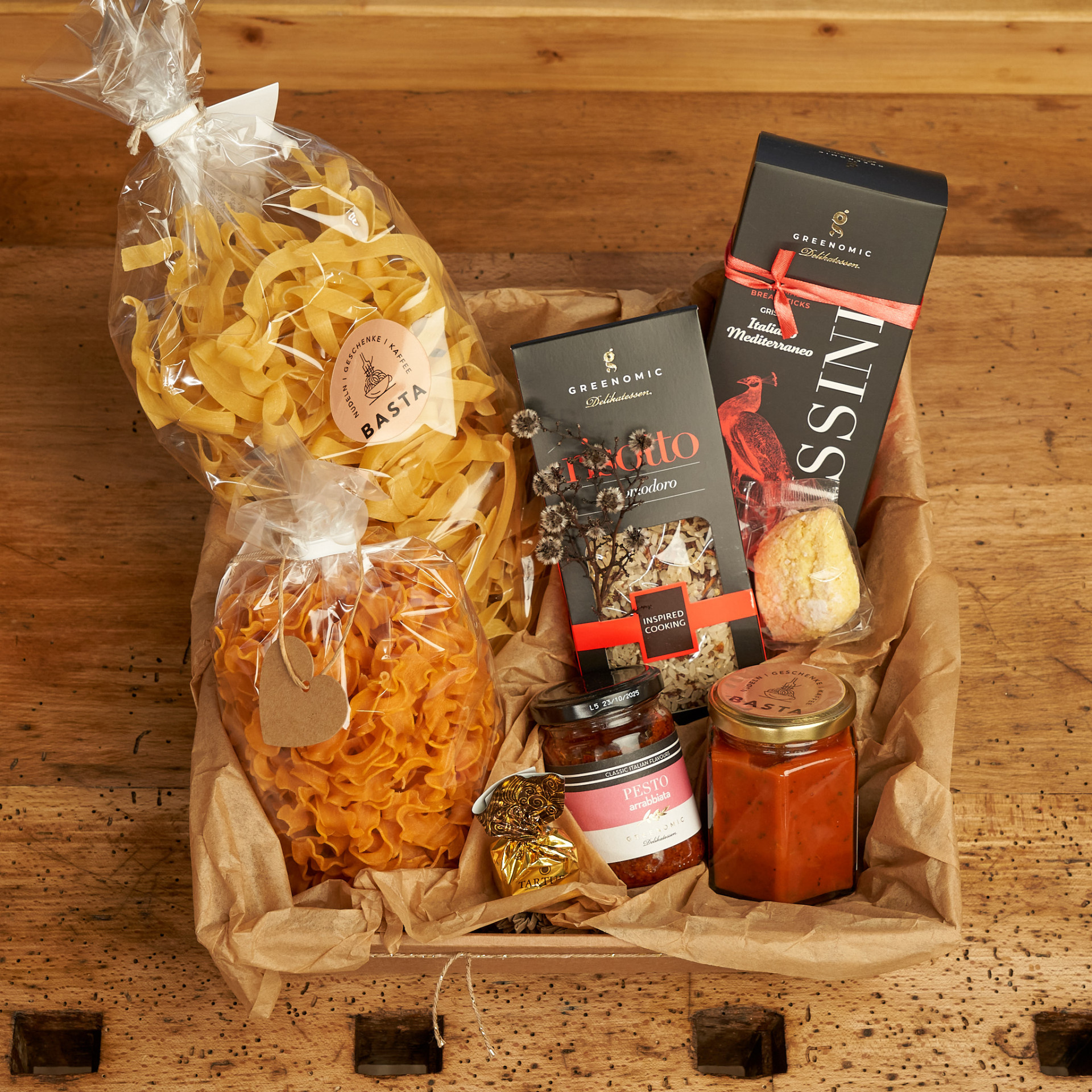 Der „Italia“ verpackt die Essenz der italienischen Küche in einem sorgfältig zusammengestellten Paket, ideal für Liebhaber der mediterranen Aromen. Dieser Korb ist gefüllt mit klassischen und liebevoll hergestellten Produkten, die jede Mahlzeit bereichern.